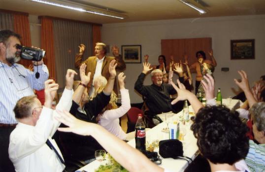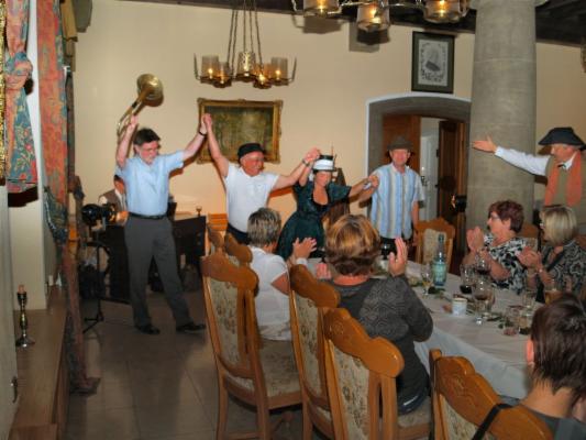 eine Abendveranstaltung für eine Reisegruppe in einem Hotel, bei der auch einige Gäste ihren