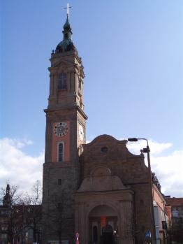 Touristinformation von Eisenach - daneben die Georgenkirche (Johann Sebastian Bach-Kirche)